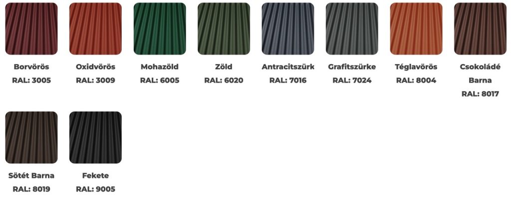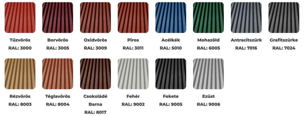 - S18 Sinus profillemezt az építmény követelményeinek függvényében 0,4-0,6 mm névleges vastagságban gyártjuk